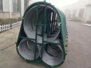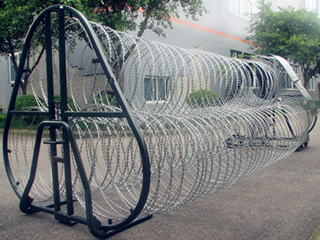 阻隔網(防暴阻隔網)主要由動支架、定支架、刀片網、回收裝置組件等四部分組成。