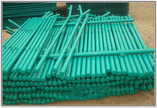 燕尾柱:熱鍍鋅板材通過(guò)冷彎和冷軋成型。其結(jié)構(gòu)簡(jiǎn)單,形狀為規(guī)則的半橢圓型,安裝方便。柱體上的掛鉤由缺口分為幾部分并沿柱體縱向均勻地分布于柱體兩側(cè)、常與荷蘭網(wǎng)安裝、只需一把卡鉗即可。